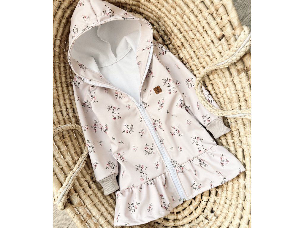 Táto dievčenská softshellová bunda v jemnej púdrovej farbe s drobným kvetinovým vzorom je ideálnym spojením funkčnosti a roztomilého dizajnu. Vďaka kvalitnému softshellu spoľahlivo chráni pred vetrom a vlhkosťou, no zároveň zostáva priedušná a pohodlná na každodenné nosenie.