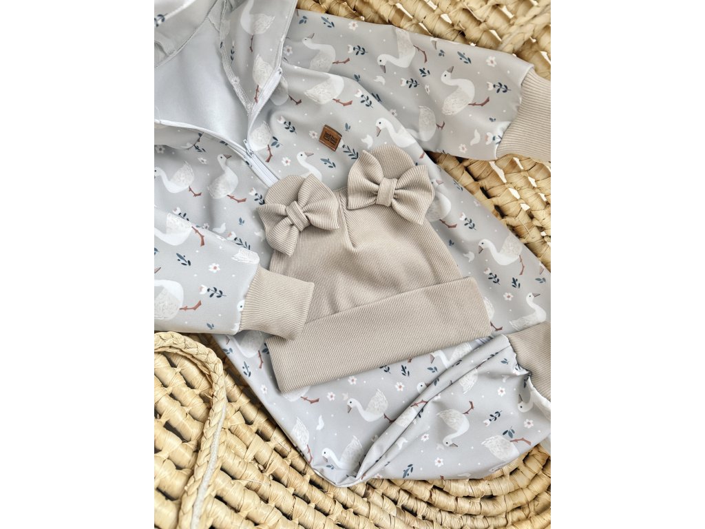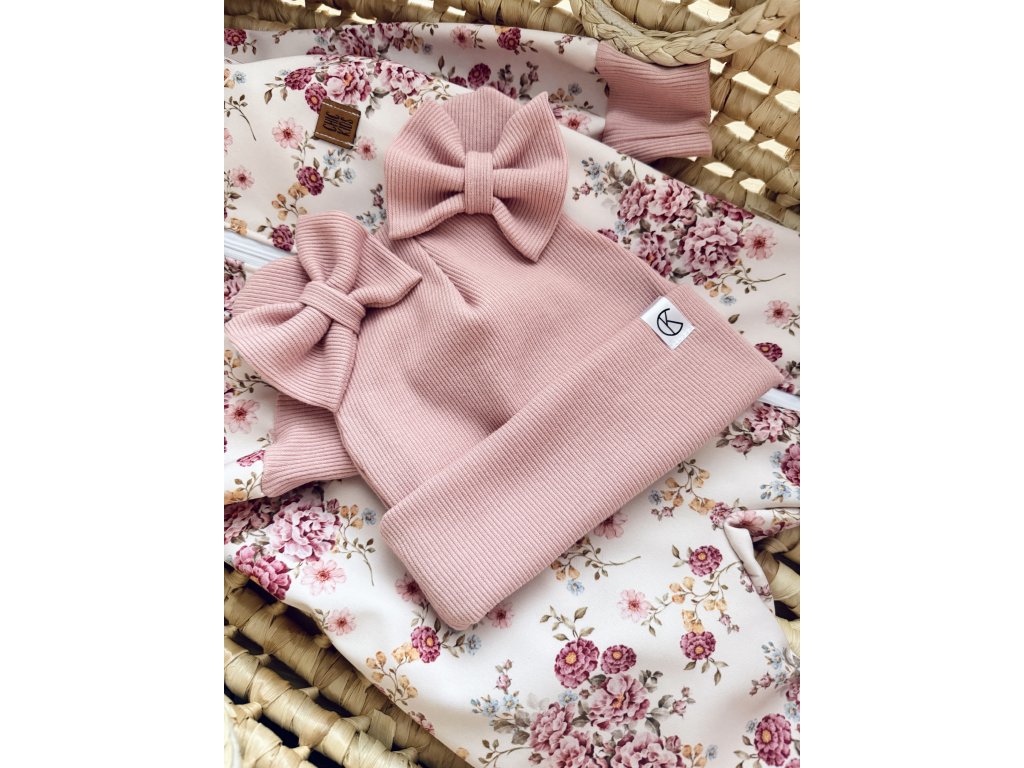 Rebrovaná čiapka z bavlneného úpletu s uškami a mašličkami.