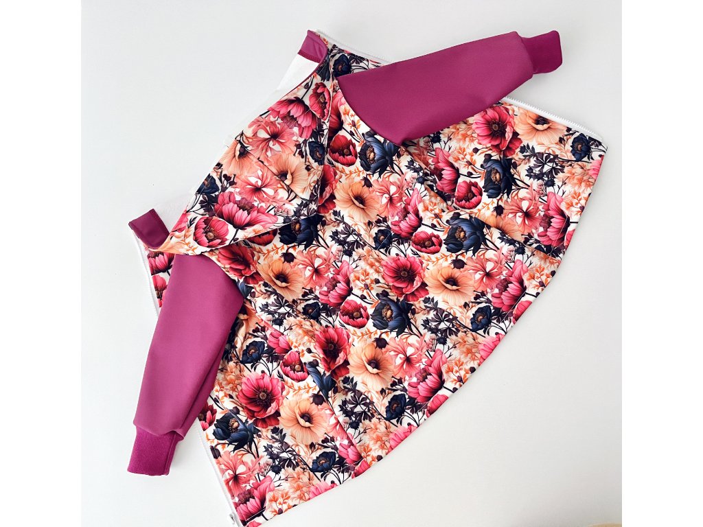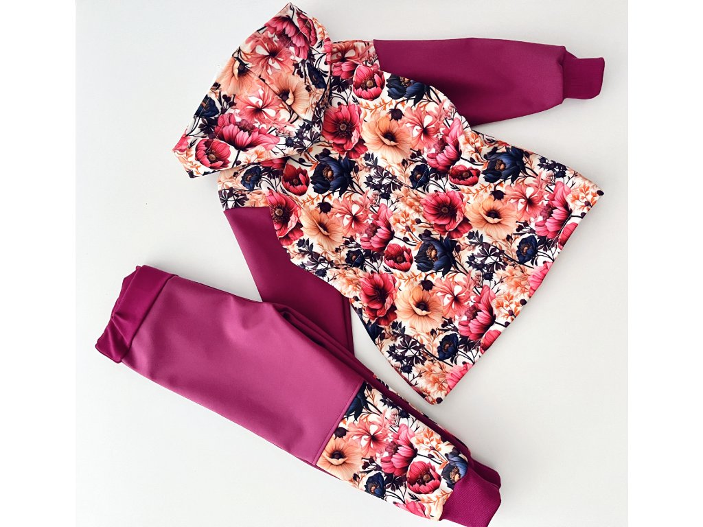 Softshellová súprava v krásnej kombinácii tmavých kvetov a amarantového softshellu. Súprava je vhodná od +5°C, tým je must have kúskom od jesene až do jari.